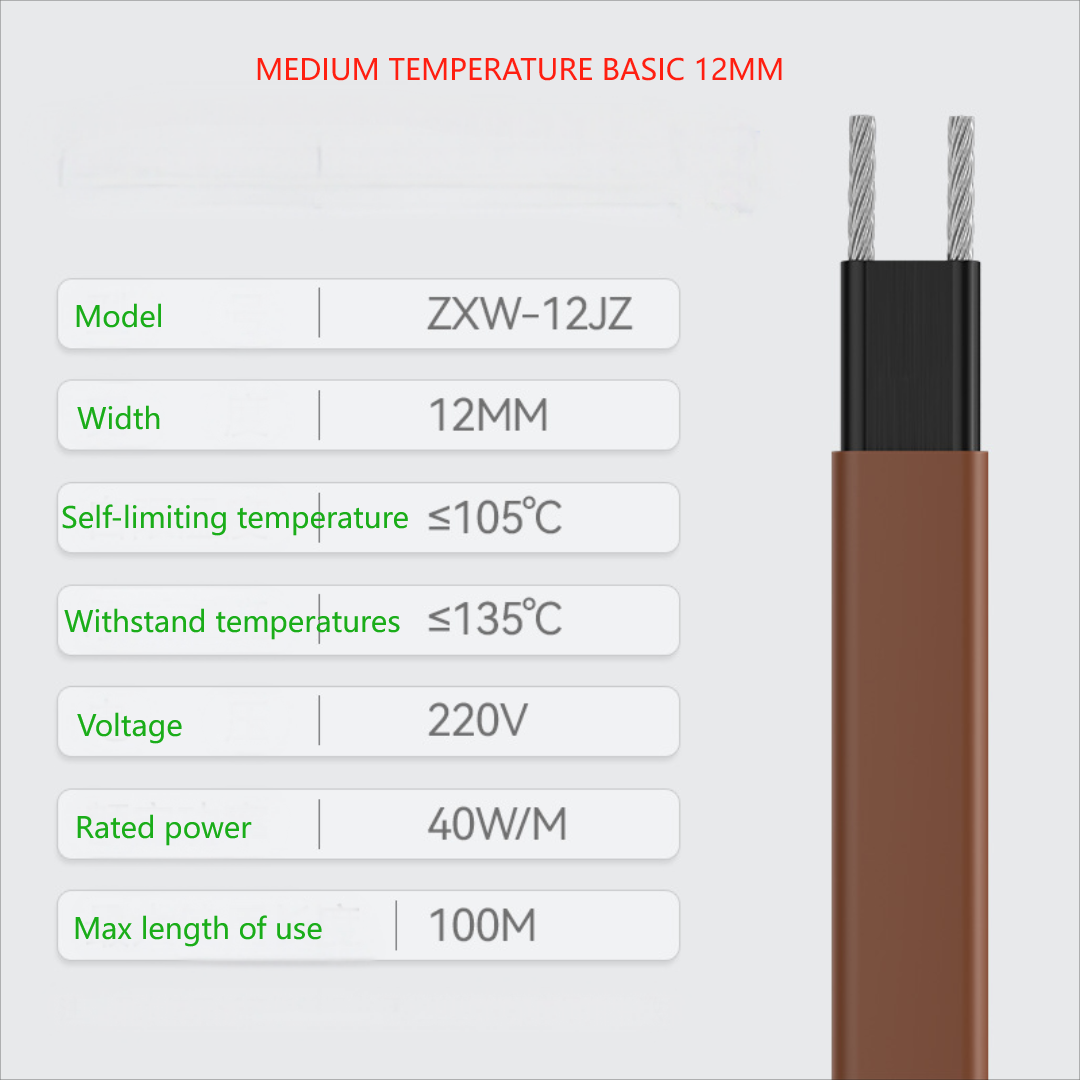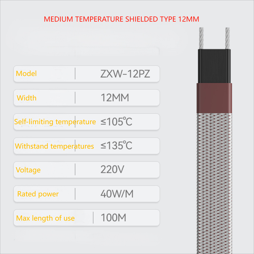 Based on PTC (positive temperature coefficient) conductive polymer material, the power is automatically adjusted with the ambient temperature (10~35W/m, low temperature type) to avoid local overheating