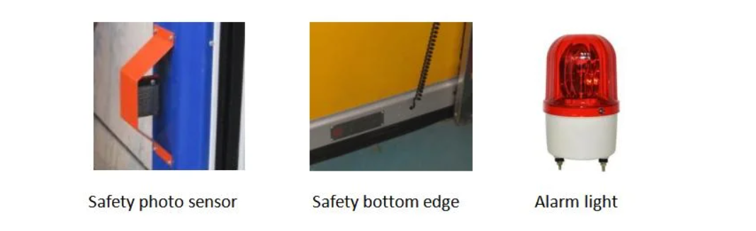 Bottom soft wireless safety edge ,photos sensor ,Warning lamp are always the standard configuration.
