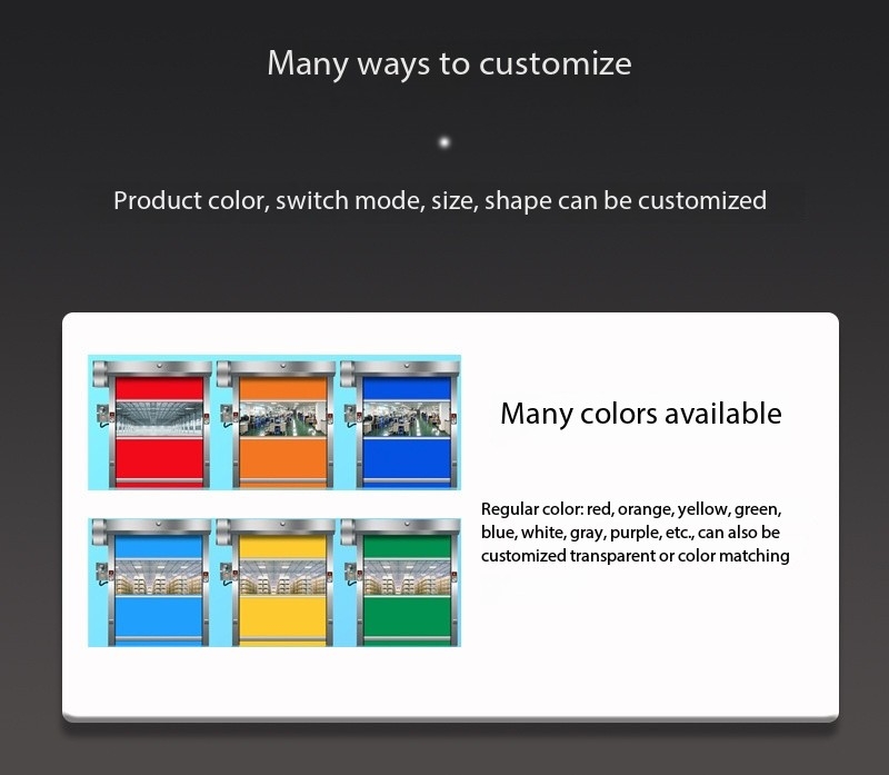 4. Strong durability: The fast rolling shutter door is made of high-quality materials, which has high durability and can be used for a long time.